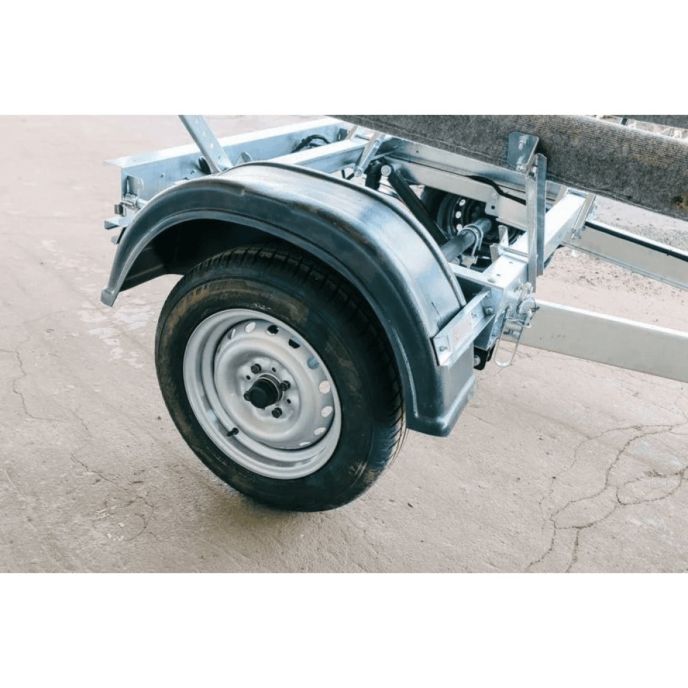 Легковой прицеп производства завода Tavials ДОН B3517 для перевозки гидроцикла или ПВХ лодки, длиной до 3600 мм. Самосвальная функция (опция) облегчает погрузку/выгрузку. Съемная задняя световая панель позволяет уберечь оптику прицепа от контакта с водой.