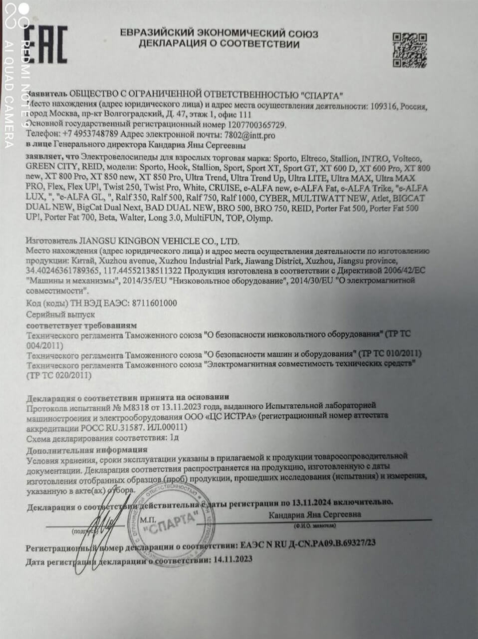 Работаем официально — зарегистрированы в торговом реестре 27.05.2024 г. под номером 581478. Вся техника имеет сертификаты качества официальную гарантию: